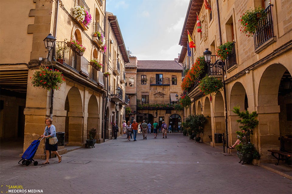 Edificios renacentistas y barrocos en cuyas fachadas se pueden contemplar hermosos escudos forman el caserío de la villa. En los extremos de la población sus dos iglesias: San Juan Bautista y Santa María de los Reyes. Si hubiera que resaltar un edificio emblemático para Laguardia, sería sin duda este último, la iglesia de Santa María de los Reyes en cuyo interior se encuentra un pórtico realizado en piedra a finales del siglo XIV que conserva intacta la policromía del siglo XVII.
